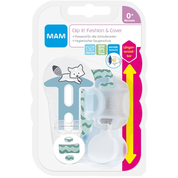 Om niet lang te hoeven zoeken en fopspenen niet kwijt te raken, kunt u ze eenvoudig aan de kleding van uw baby vastmaken met de MAM fopspeenband. De Clip it! fopspeenriem van MAM heeft een flexibele ring en is daardoor geschikt voor alle fopspenen en andere babyaccessoires.